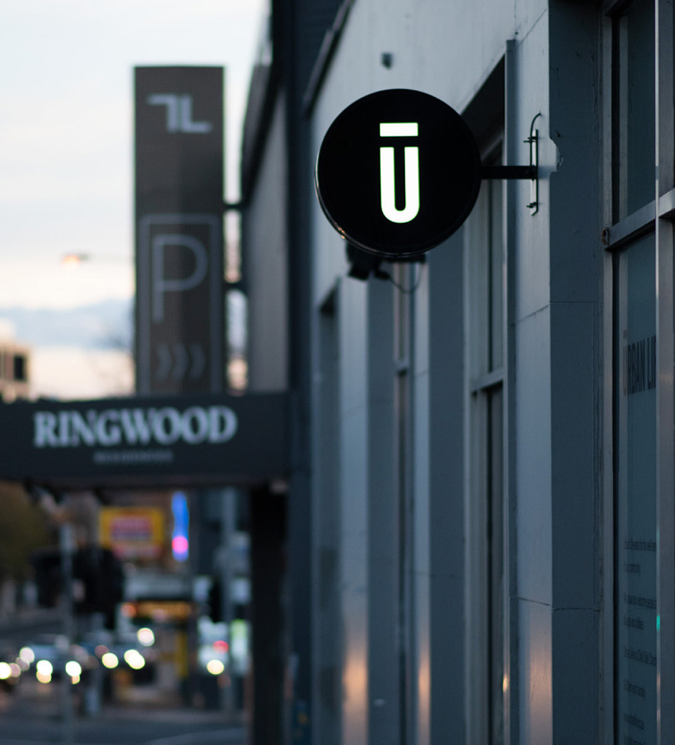 Visual identity for Urbanlife community in Melbourne. A clean, uncomplicated design was developed incorporating a macron (overscore). The macron indicates a place to pause – serving as a reminder to pause and consider how best to live for the well being of the community.